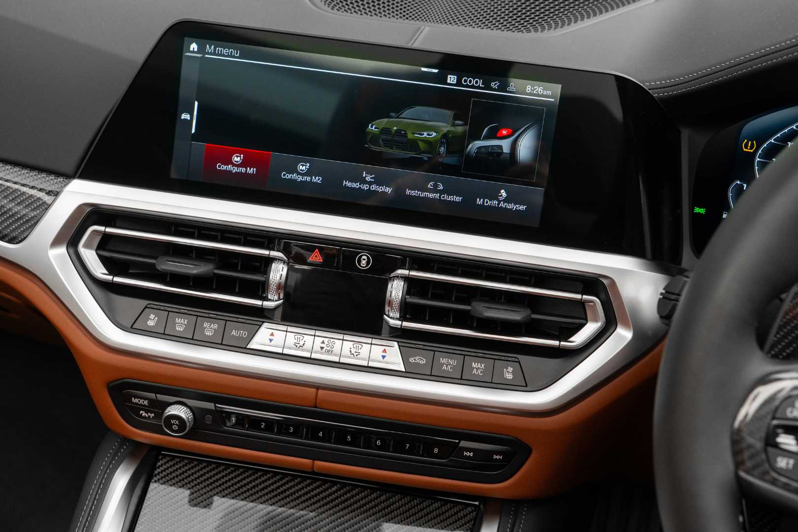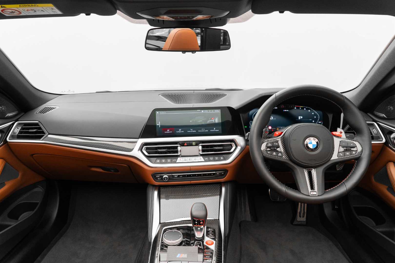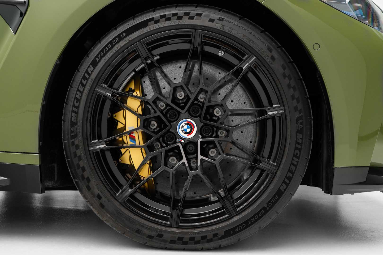 While the standard braking system comes with 6-piston front calipers and 380 mm discs, and single-piston rear calipers with 370 mm discs, this particular car has been upgraded to the optional M Carbon Ceramic Brakes — featuring gold-painted calipers and larger discs (400 mm front, 380 mm rear) — offering exceptional stopping power and heat resistance.