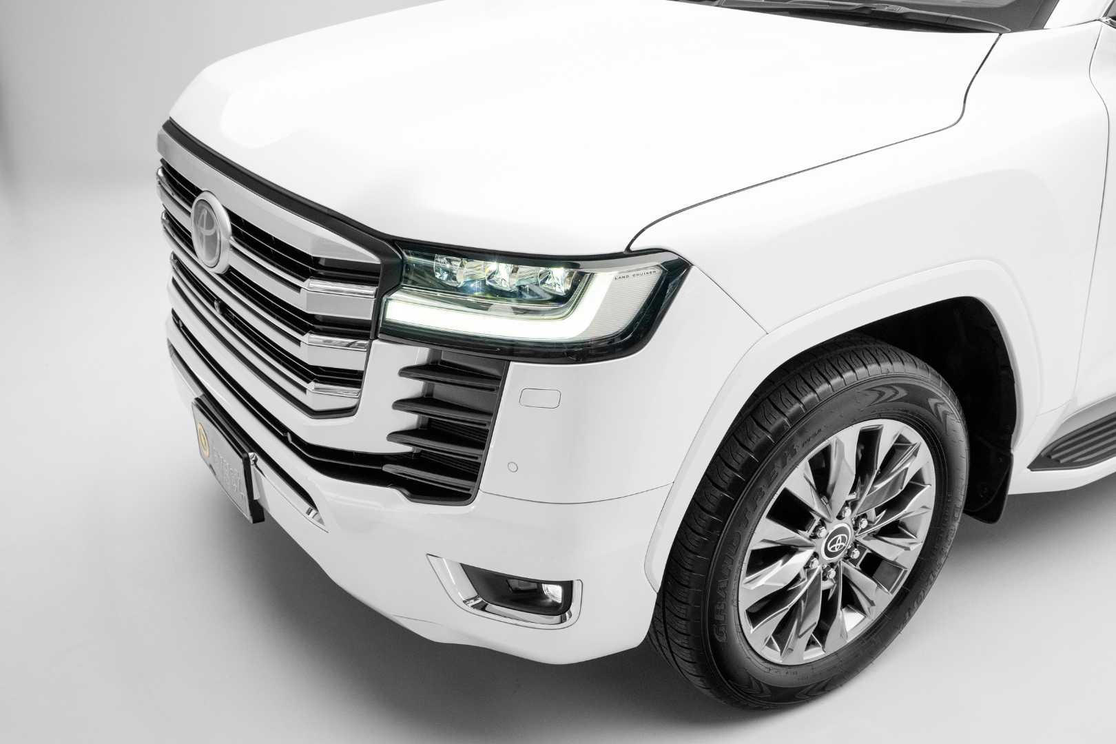 Beyond its impressive performance, the Land Cruiser 300 Series features a more refined and cohesive design. Highlights include newly styled LED headlights, a large front grille that enhances the vehicle’s wide stance, new squared wheel arches that complement the bold front-end design and large hood, and new horizontal LED taillights at the rear.