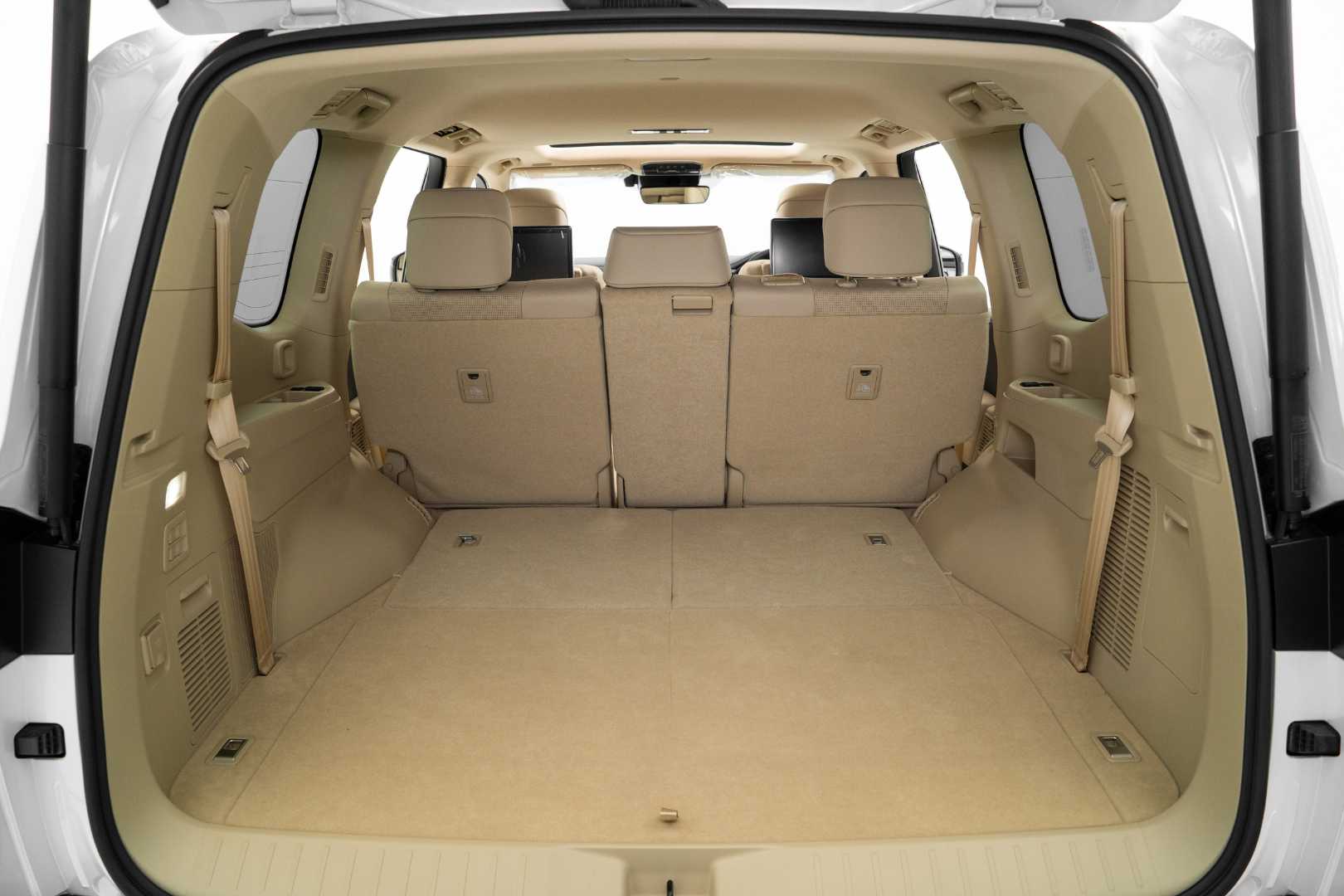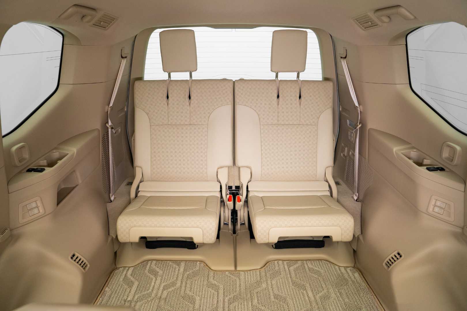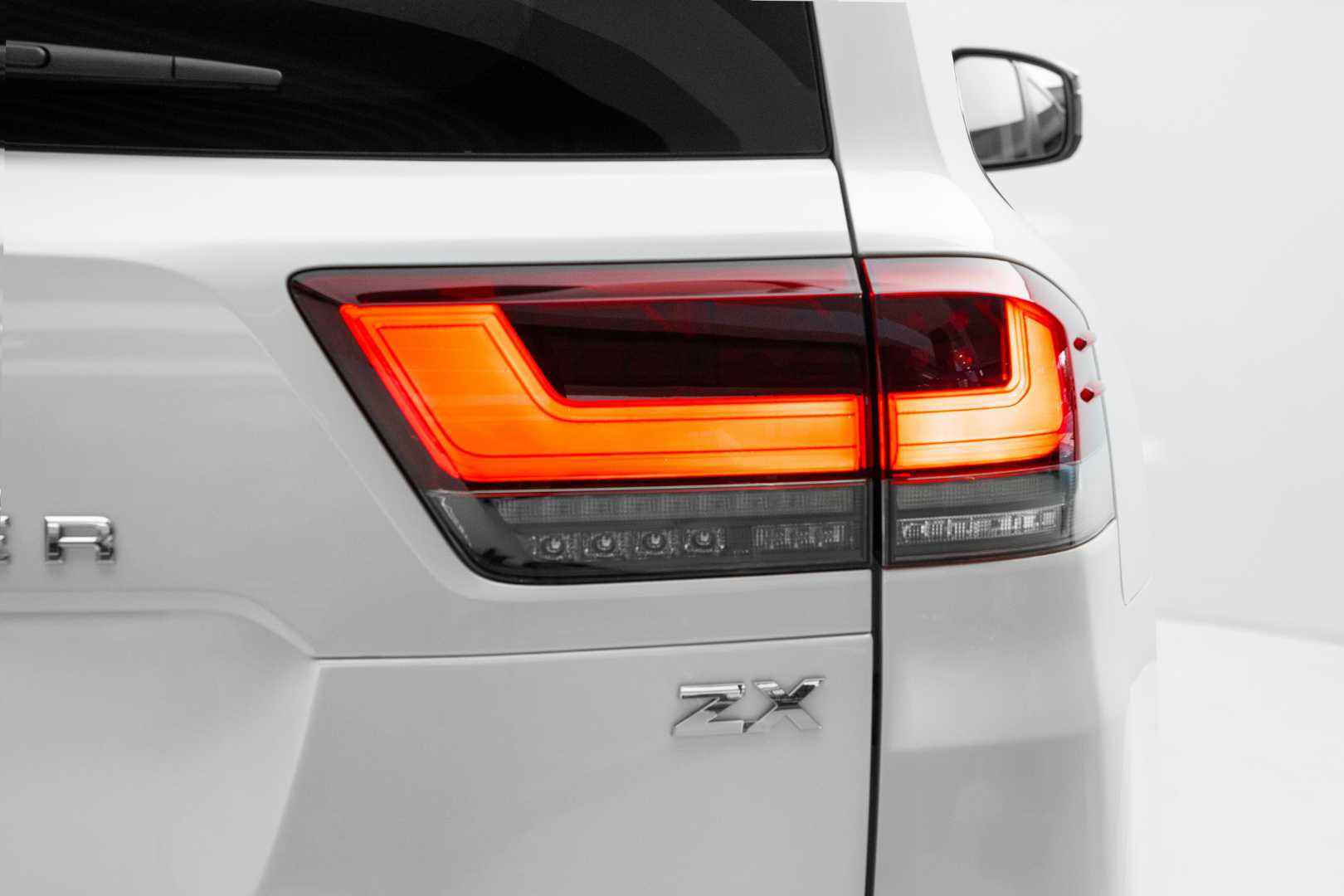 What truly sets the ZX variant apart is its extensive chrome exterior detailing, including the grille, lower bumper trim, fog light surrounds, and side mirrors. It also features full LED headlights, 20-inch chrome-finished alloy wheels with 265/55R20 tires, and a cabin trimmed in genuine leather throughout. The second-row seats are power-folding and sliding, allowing easy access to the third row.