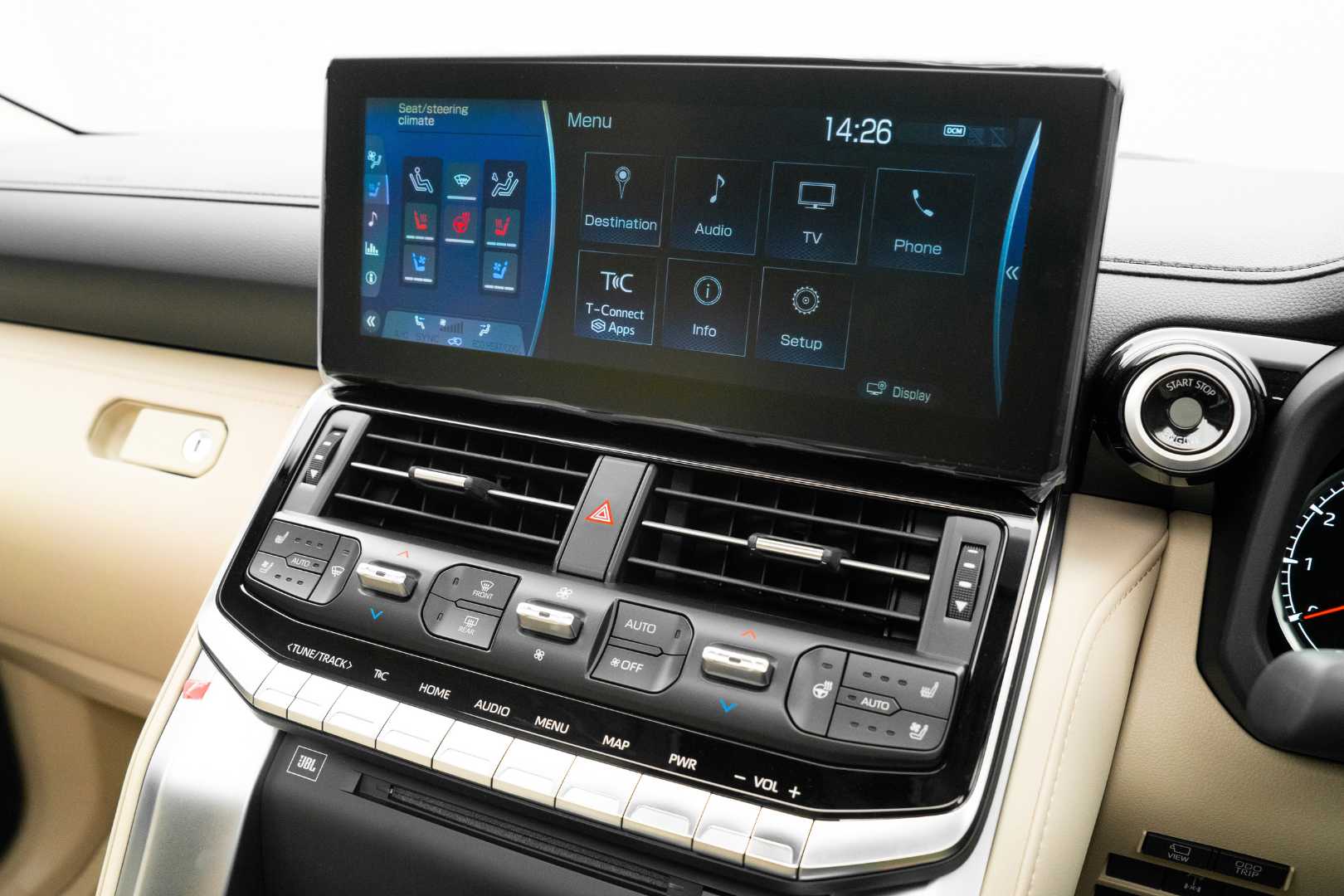Inside, the cabin is designed for ease of use while maintaining a premium feel. A large central infotainment display dominates the dashboard, while physical buttons on the front and center consoles remain, ensuring intuitive operation—especially important in off-road situations.