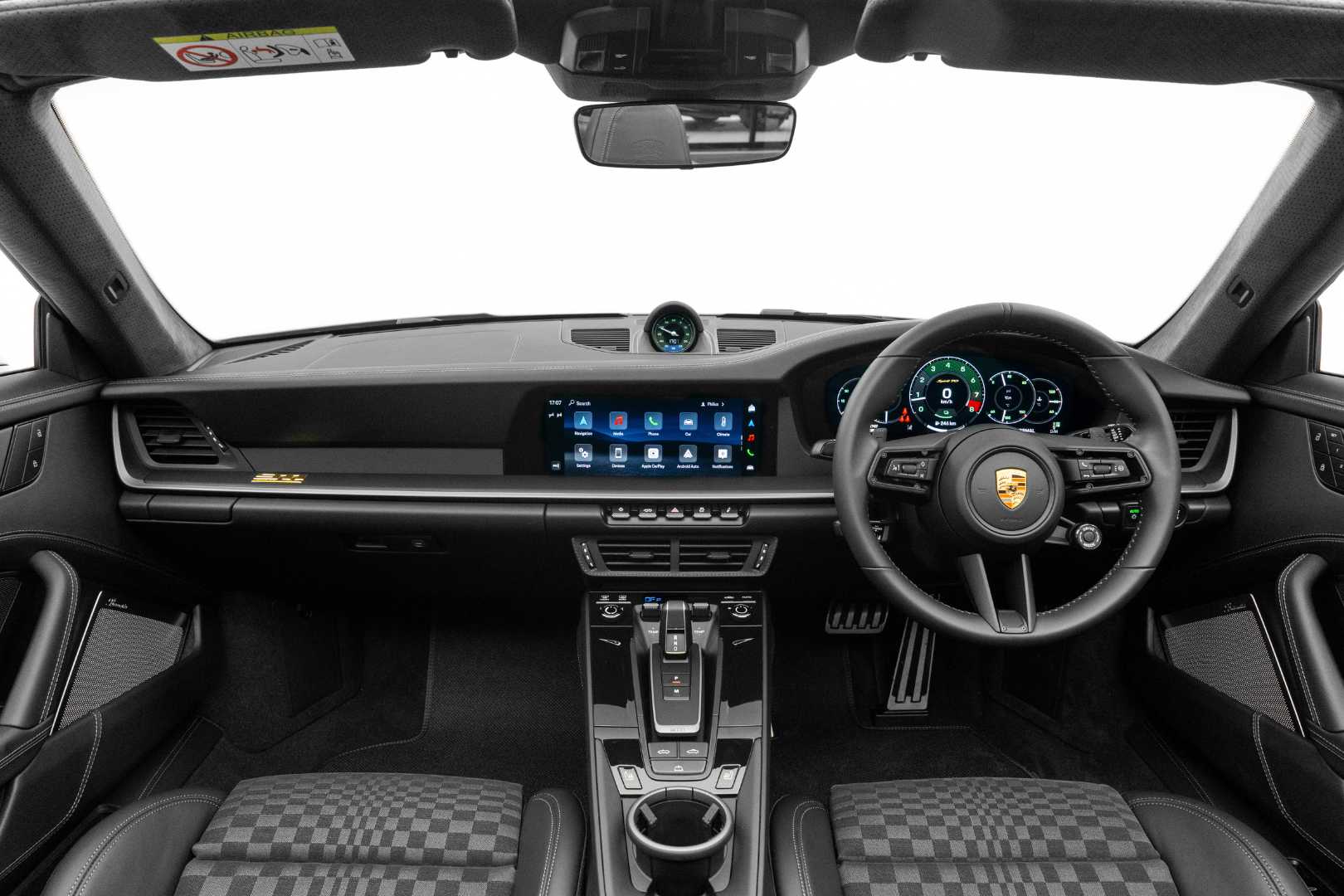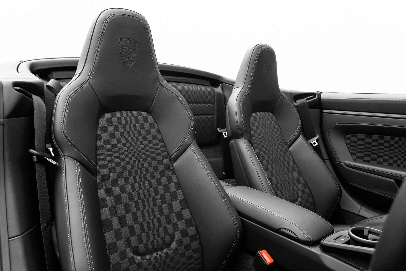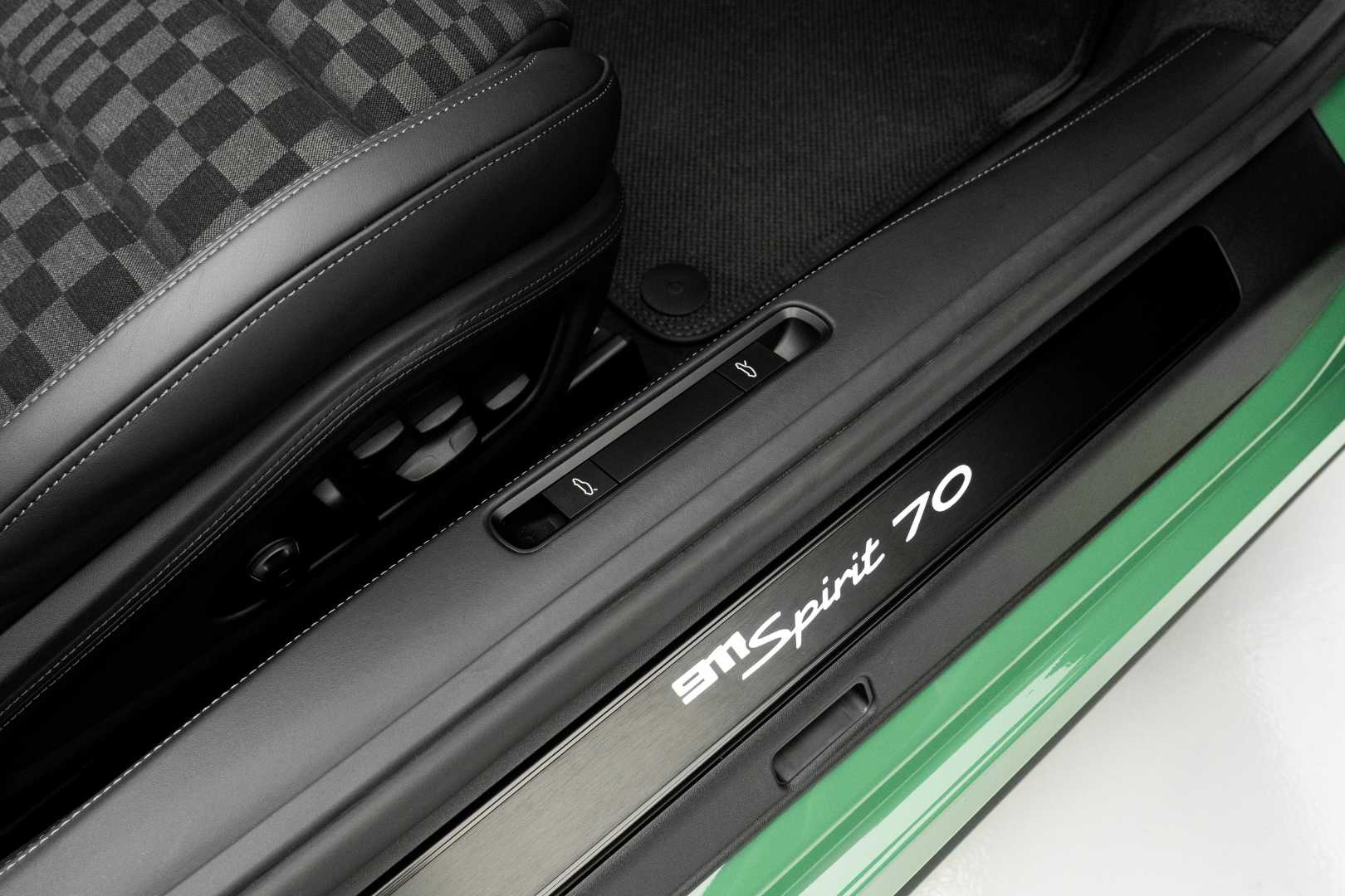 Inside, the 911 Spirit 70 takes the cabin straight back to the 1970s. The seat centers and various interior trim pieces feature a chequered pattern in black and Darksilver, crafted from a blend of woven fabric and wool yarn.