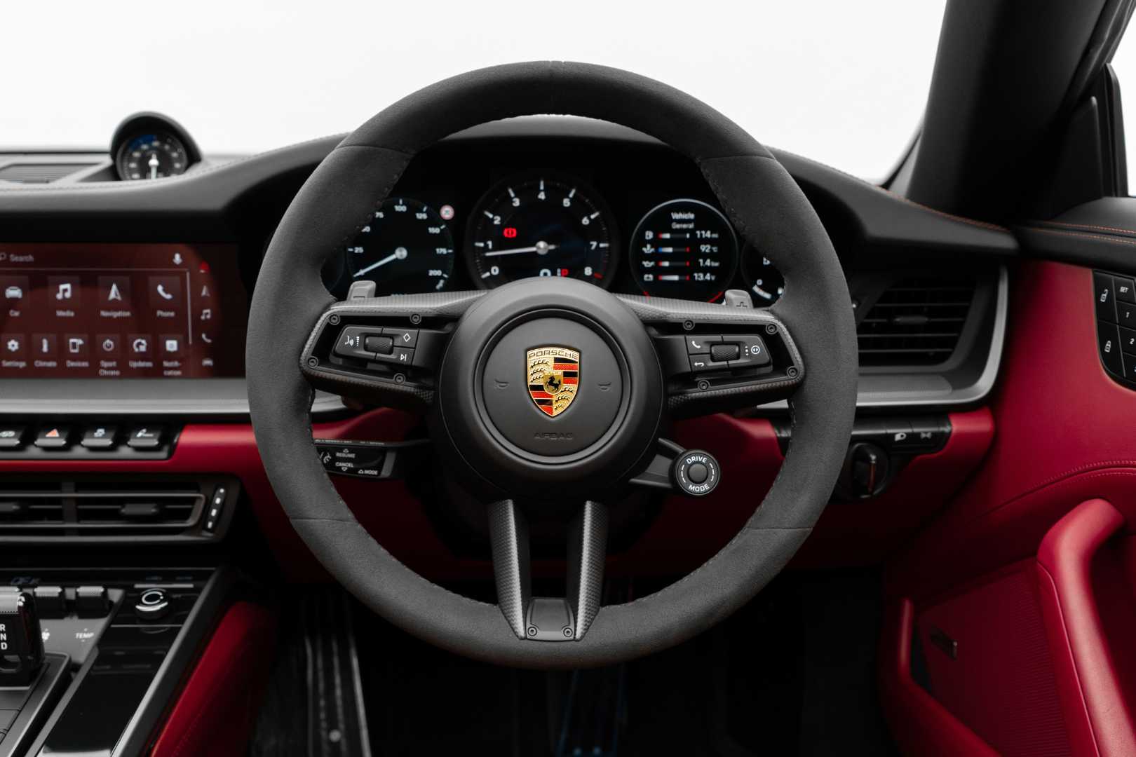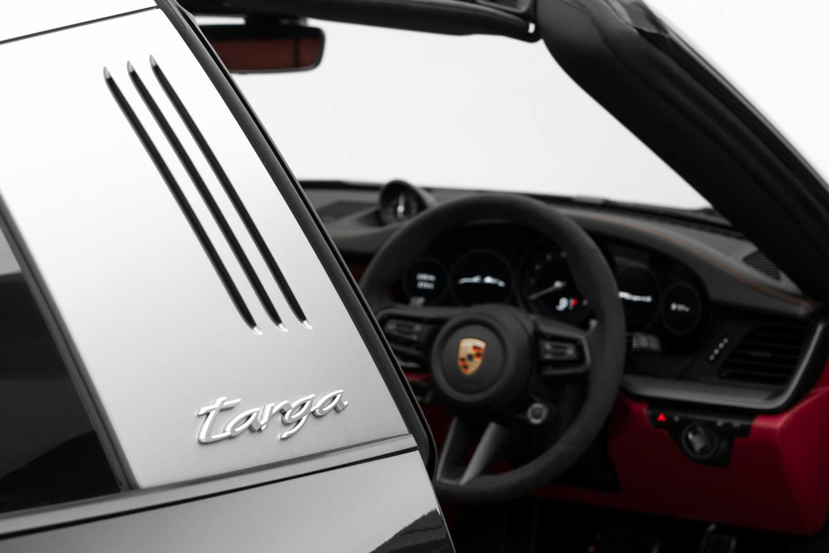 ตัวถัง Targa ของ Porsche 911 รหัส 992 นั้น นับว่ามีเอกลักษณ์เฉพาะตัวอย่างมาก ด้วยหลังคาที่เป็นเอกลักษณ์ โดดเด่นแม้จะมองจากระยะไกล และเมื่อรวมกับหลังคาผ้าใบสีแดงสดแล้ว จะยิ่งโดดเด่นกว่าเดิมไปอีก!!!