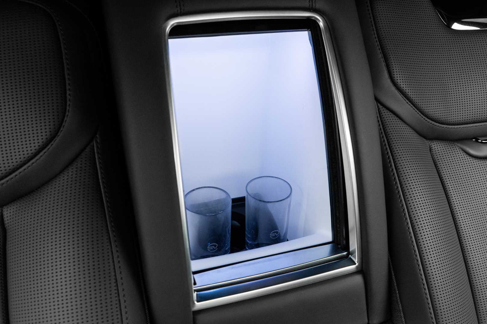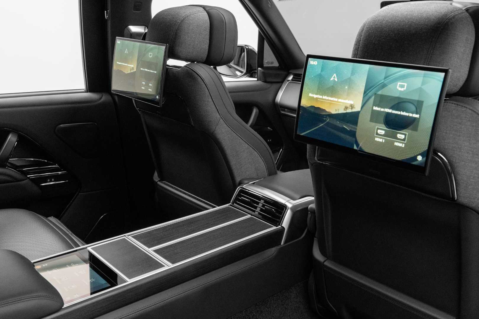 Range Rover SV คันที่เห็นอยู่นี้เป็นรุ่น LWB ที่เพิ่มความยาวจาก 5,052 มม. อีก 200 มม. เป็น 5,252 มม. ซึ่งมาจากระยะฐานล้อที่ยาวขึ้น 75 มม. ทำให้มีพื้นที่ที่มากขึ้น สำหรับผู้โดยสารด้านหลัง และเมื่อรวมกับเบาะนั่ง SV Signature Suite พร้อมโต๊ะ Club Table ที่เป็นคอนโซลกลางแบบยกสูงที่ทอดยาวตั้งแต่ด้านหน้าจนถึงด้านหลังก็จะเพิ่มความหรูหราไปอีกระดับ เท่านั้นยังไม่พอ เพราะยังมีที่วางแก้วและตู้เย็นที่อยู่ตรงกลางระหว่างเบาะนั่งด้านหลังที่เปิด-ปิดด้วยไฟฟ้า