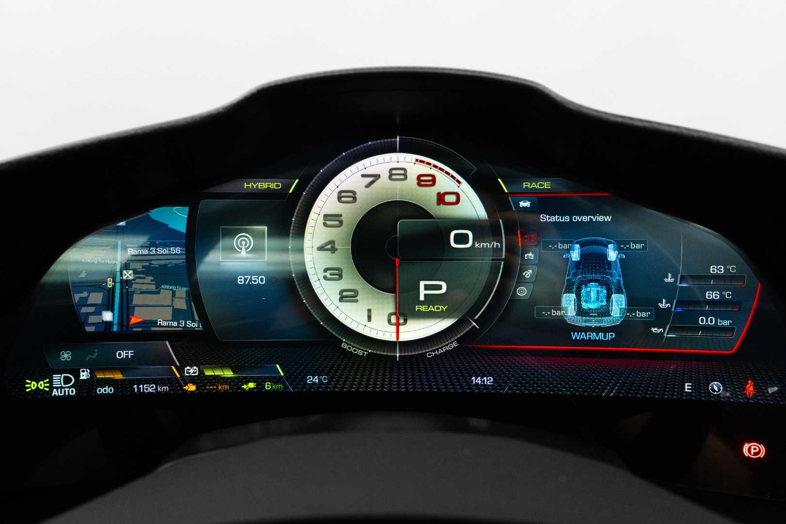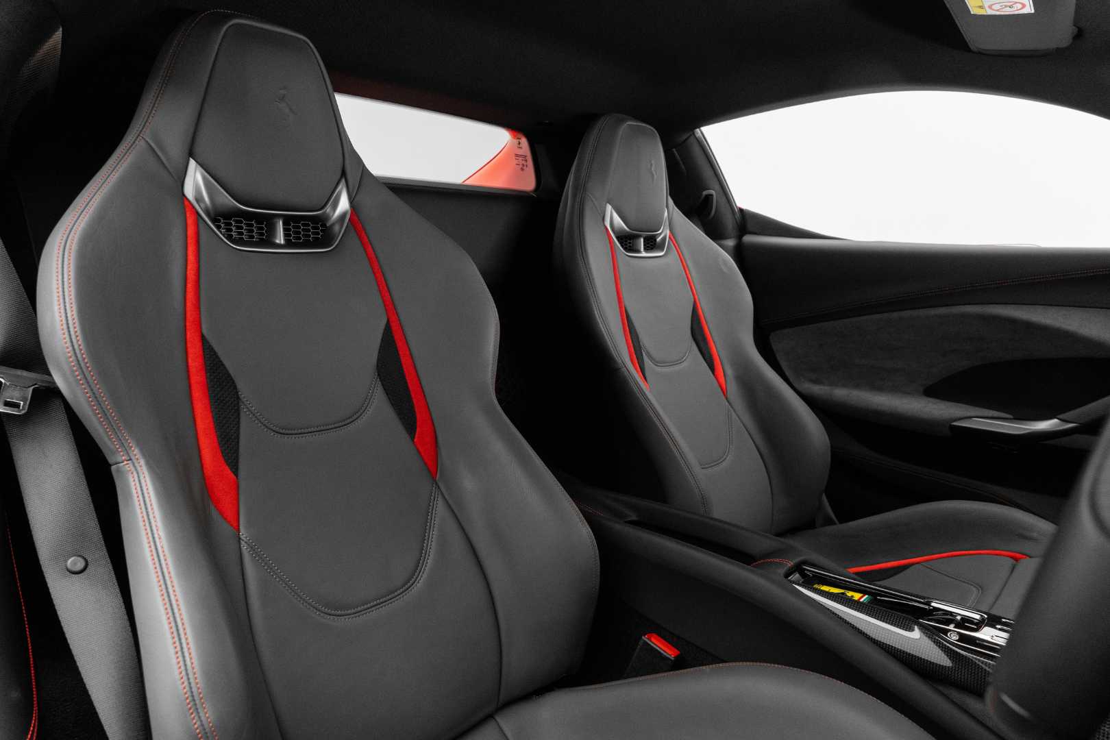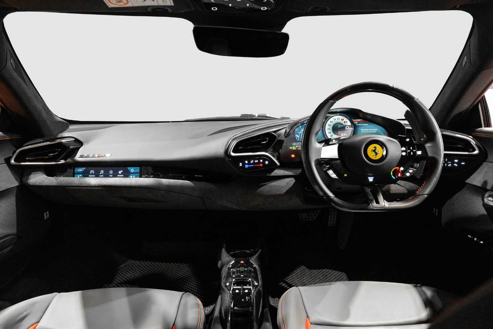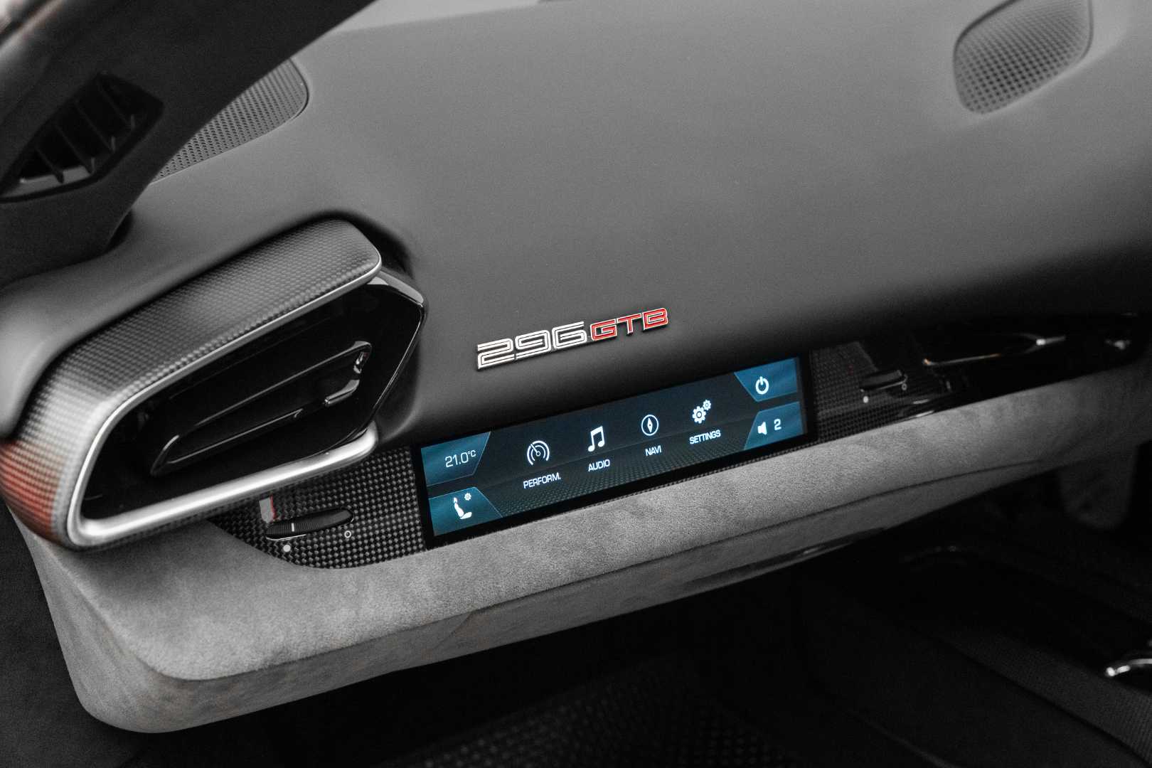 Inside the cabin, the 296 GTB is clearly driver-focused. The digital instrument cluster features graphics inspired by the classic Ferrari Dino, while the retro-style gear selector echoes that of the SF90. There is also a small horizontal display on the dashboard dedicated to passenger information.