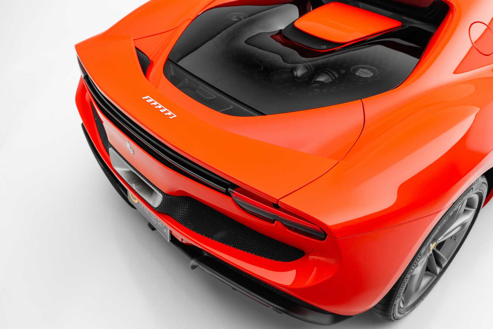 At the rear, the design stands out with flying buttresses, a third central brake light, a vertical rear window, and an active rear spoiler capable of generating up to 360 kg of downforce at 249 km/h, all while maintaining Ferrari’s signature clean and elegant design language.