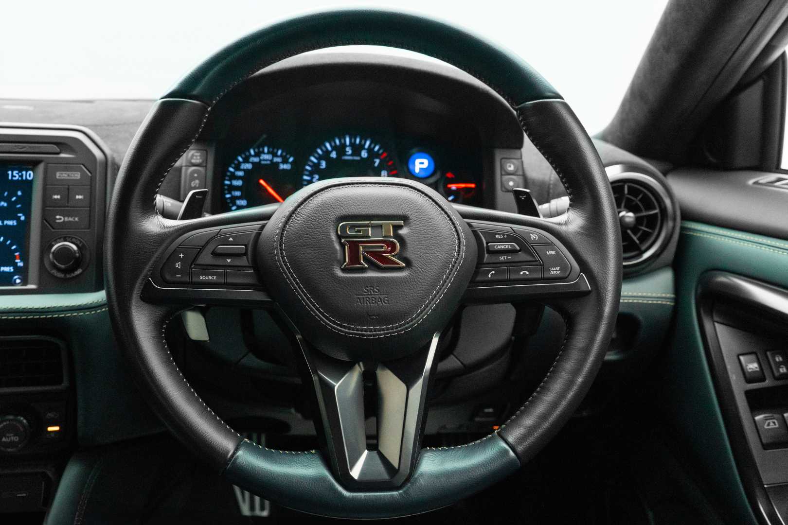 Power comes from the VR38DETT 3.8-liter twin-turbo V6 engine, delivering 555 horsepower at 6,800 rpm and 632 Nm of torque from 3,300–5,800 rpm, paired with a 6-speed dual-clutch automatic transmission driving all four wheels.